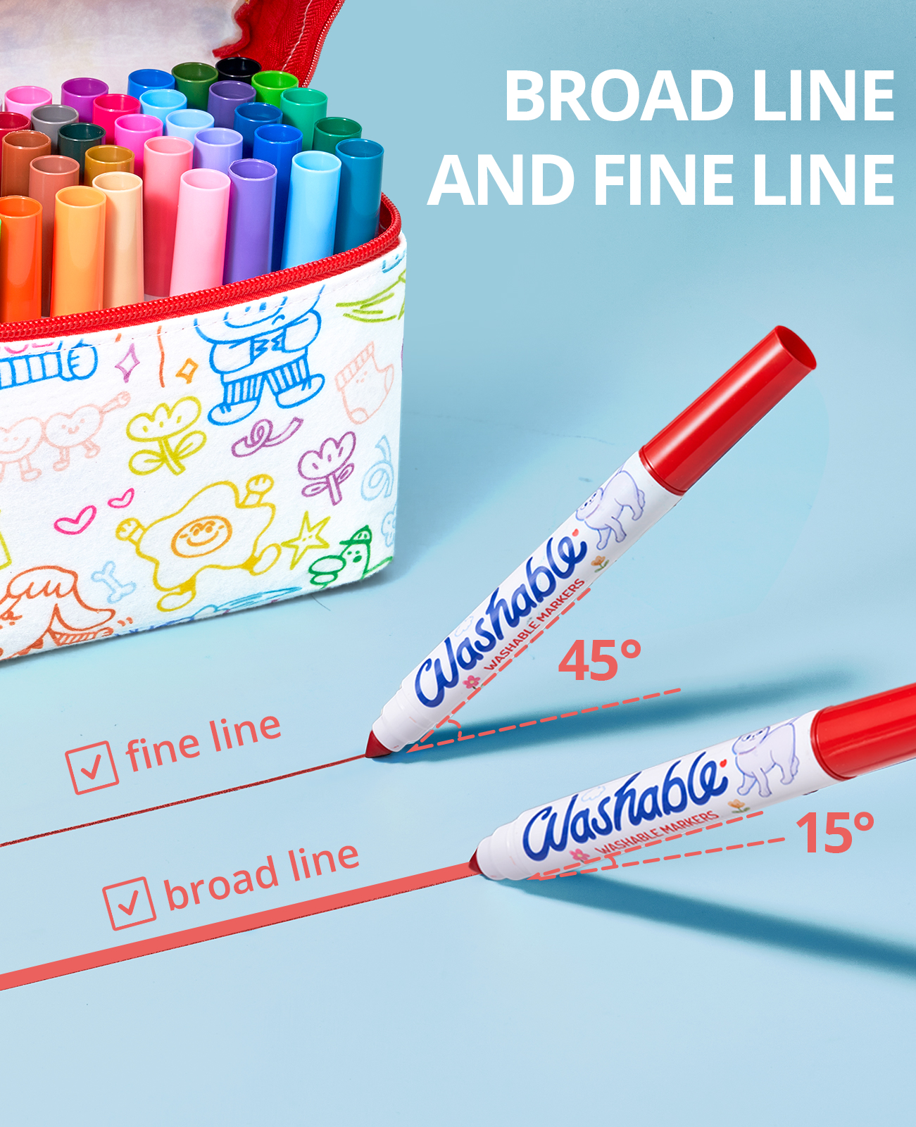 • 【DUAL-TIP DESIGN: BROAD & FINE LINES】The conical tip lets kids flip the marker for thick strokes (great for coloring big spaces!) or fine details (ideal for precision art). One marker fo kids, endless possibilities.