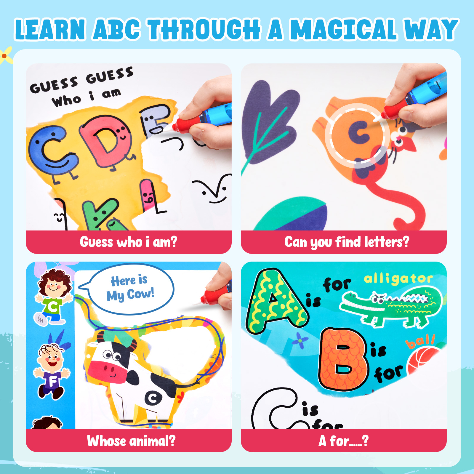 • Discover Hidden Surprises on Every Page:The magic goes beyond the letters! As your child paints with the water pen, they'll reveal a full, hidden surprise scene on every page (like animals or nature). This "seek-and-find" element boosts toddler curiosity and makes learning an exciting, screen-free adventure they'll want to experience repeatedly
