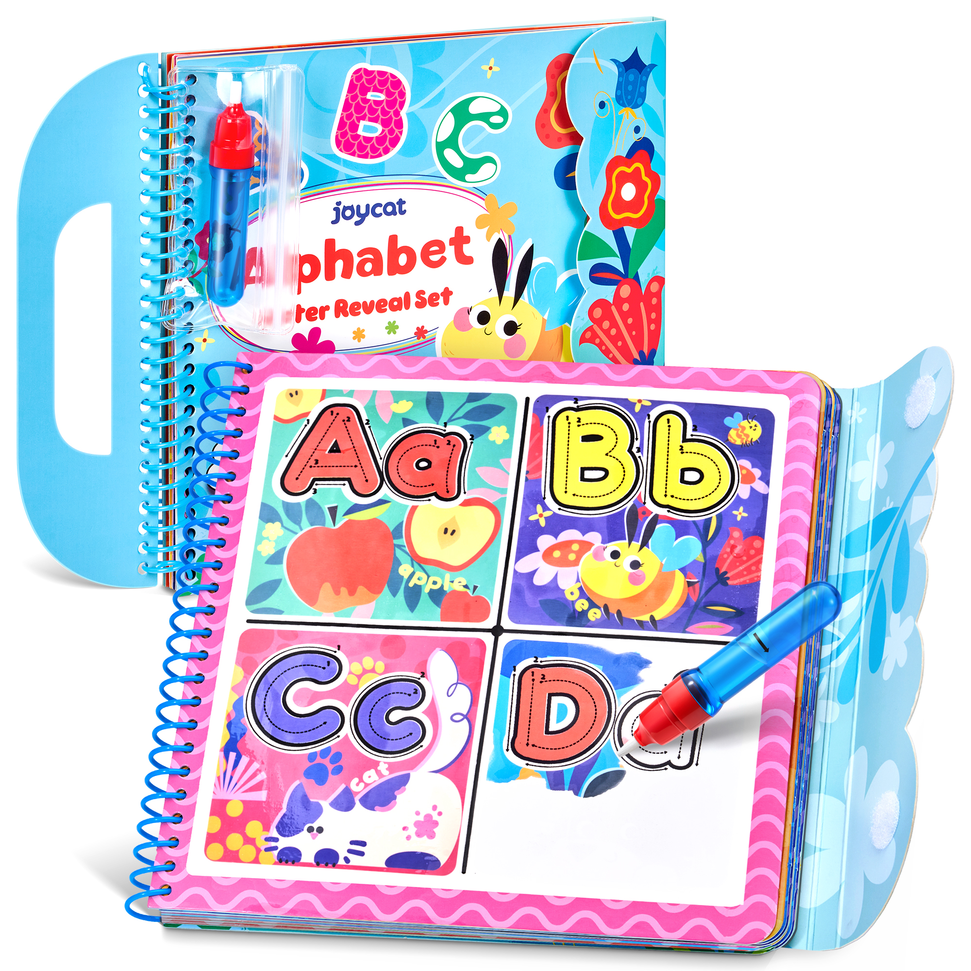 • Engaging Alphabet Learning:Turn letter practice into play! This reusable water book is designed for early learners, covering all 26 uppercase and lowercase letters. Each letter features clear, step-by-step tracing guides to teach correct stroke order. Paired with "A is for Apple" style image association and the spelled-out word, it helps build a strong connection between letters, sounds, and meanings