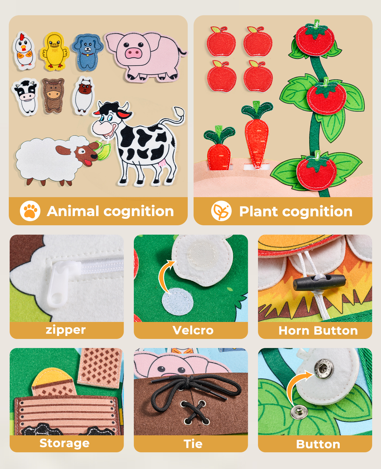 Safe & Durable Materials: Crafted from high-quality, soft yet durable felt material, this busy book is gentle on toddlers' delicate hands while being tough enough to withstand everyday play. Sturdy stitching ensures the accessories stay intact, while non-removable strings prevent safety hazards. Built to meet rigorous toy safety standards, it’s a reliable and long-lasting gift for children aged 1-3