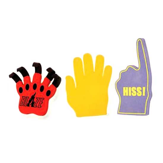Highlighted is a series of jumbo hands designed for cheering. Simply put the hands on our arms and raise them to catch attention. The eye-catching design can raise the moods in sports events, shows, carnivals, etc.