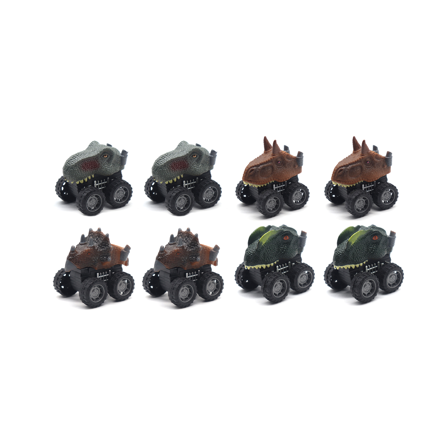 4 styles (up to 8pcs) of dinosaur head sliding car & 12 different dinosaur figures