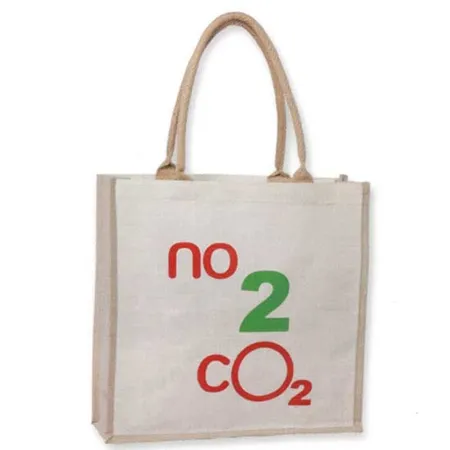 This shopping bag boasts a simple yet environmentally friendly design. It is made of jute that can be used for a long time. A clear and sharp pattern is painted on the bag for a green message.