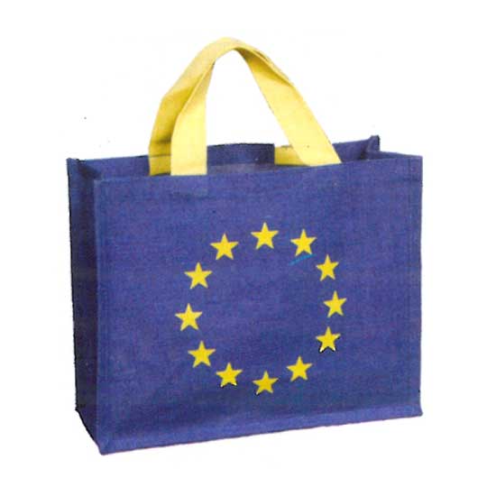 Featured here is a shopping bag in blue and yellow colors. It comes with star prints in an eye-catching way. This jute shopping bag is a great promotional item for your events.