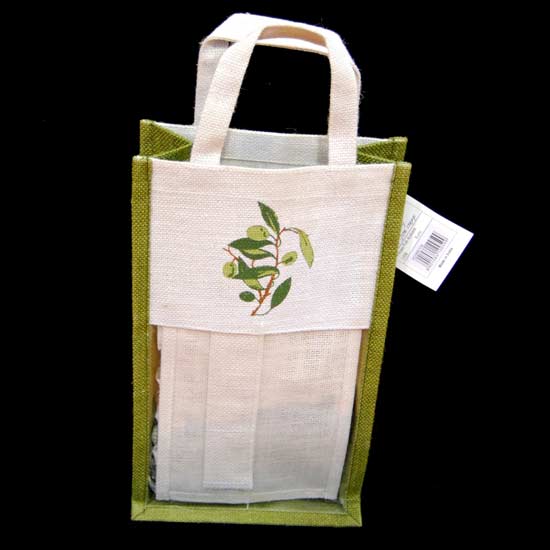 The rectangular-shaped wine bag flaunts a classy appearance in white and green. The elegant leaf pattern in the front adds a captivating finishing touch to the whole piece. The ergonomic handles promise a comfortable and easy grip. Boasting a sophisticated design, this wine bag is an unbeatable choice for the presentation of your favorite wines.