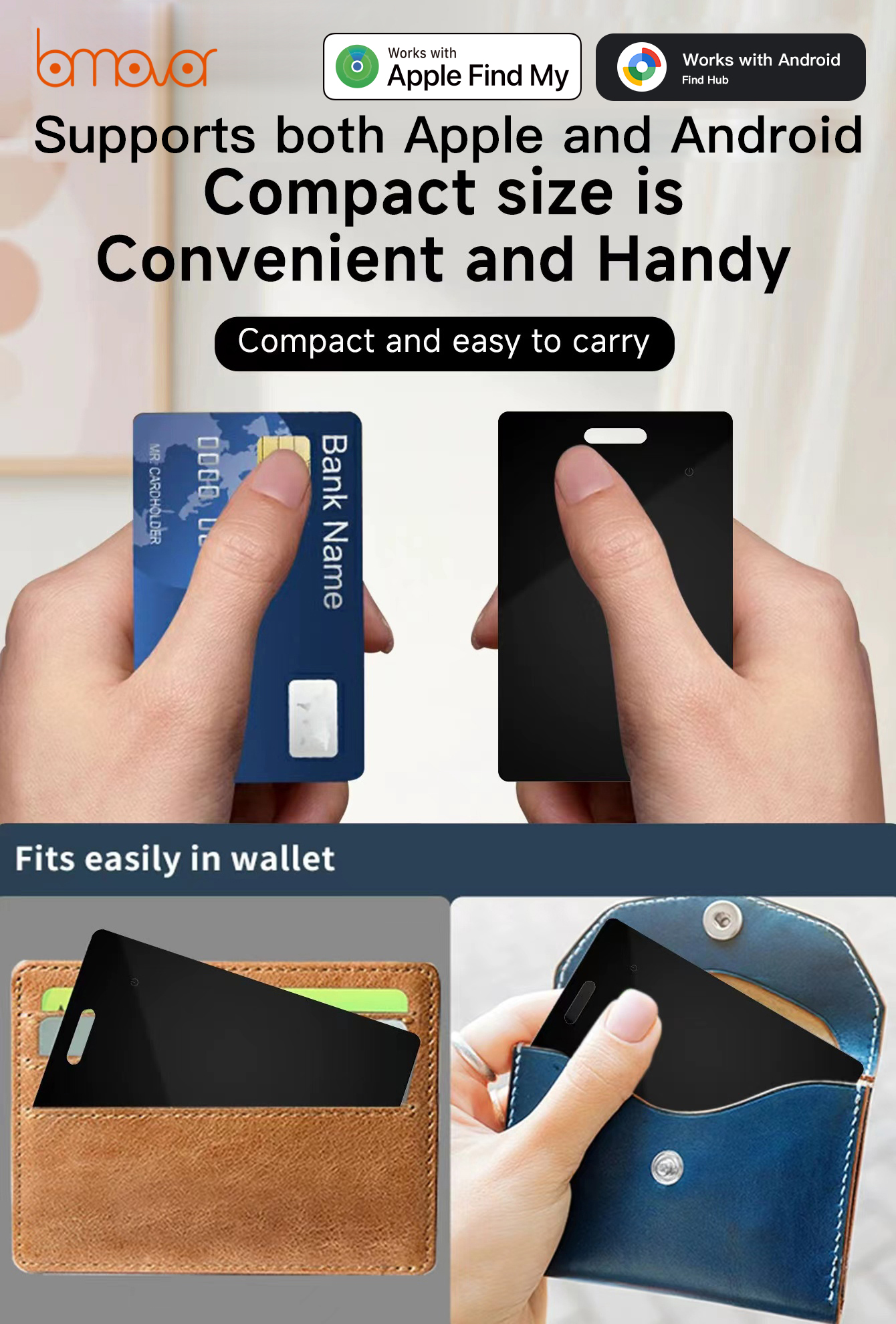 • 【Dual-System Compatibility】 Works with both Apple Find My and Google Find My Device. This ultra-thin smart tracker card connects directly to Apple's Find My network (iOS 14.5+) or Google's Find My Device/Find Hub (Android 9.0+), with no extra apps or subscriptions needed. Slip it into your wallet, passport holder, or luggage tag to easily track your essentials. Ideal for travelers, busy professionals, and anyone wanting reliable anti-loss protection. (Note: Cannot connect to iPhone and Android simultaneously. Remember to unbind after use to allow new connections. Not compatible with Huawei smartphones.)