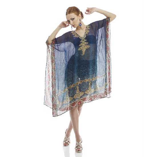 This translucent kaftan dress features sophisticated digital prints for a chic touch. It is further complemented with sequins and crystals. This tasteful resort wear is an ideal choice for ladies.