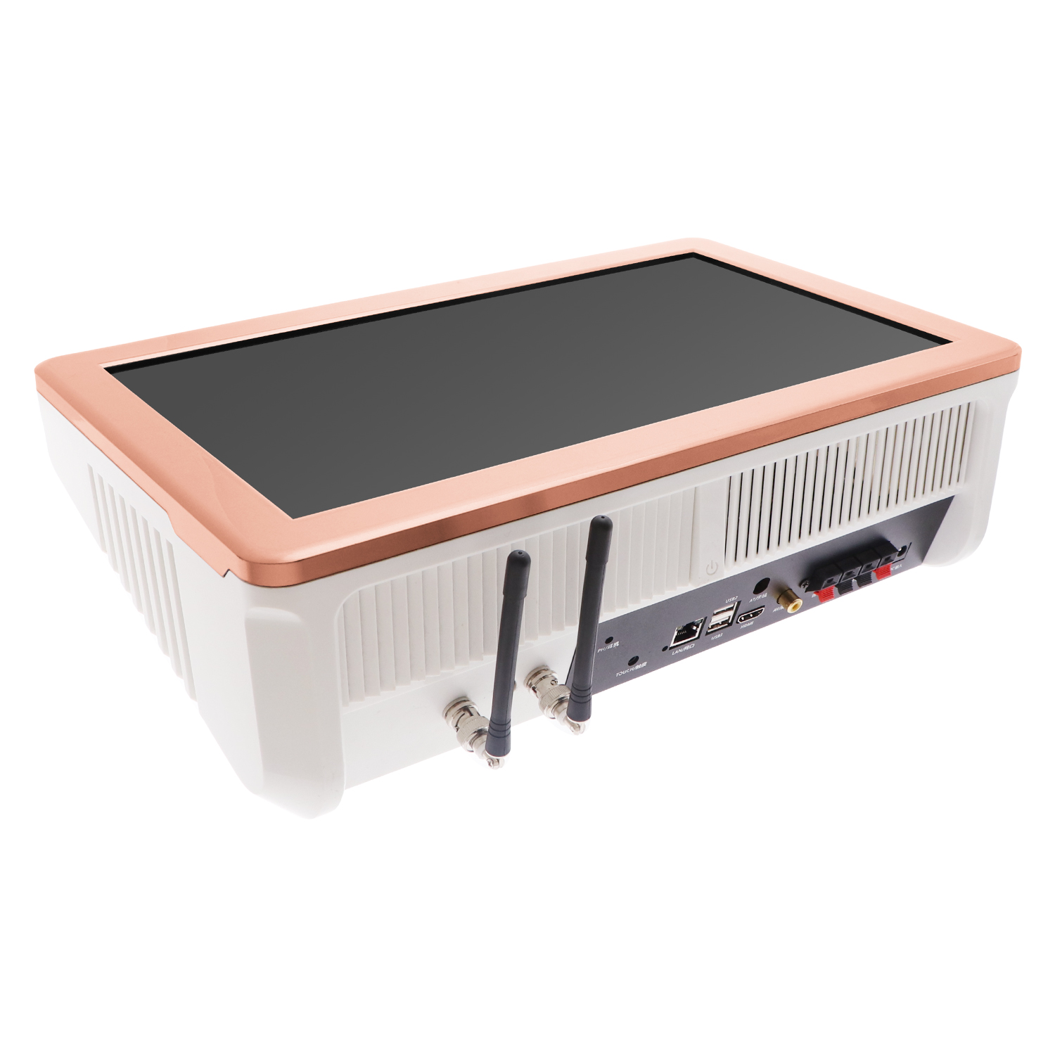 Turn up the party with this all-in-one karaoke player set. Coming alone with one touchscreen control panel, one amplifier and two wireless microphones, it has got everything you need for either a solo performance or a duet show with your friends. Simply tap on the Android tablet to play your favorite tunes in the background for a fun-fueled mini-concert.