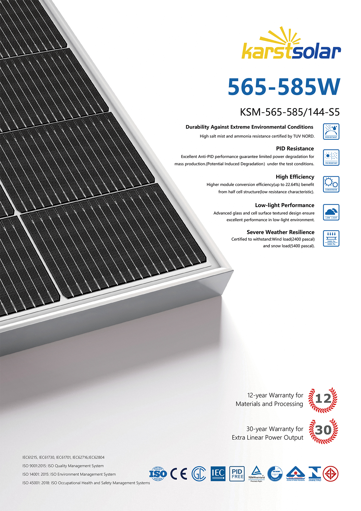 Karstsolar Solar Photovoltaic Panel KSM565W-585W Topcon N-type
