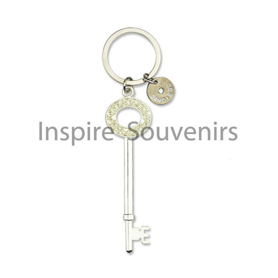 This key chain comes with a dazzling key decoration for great uniqueness. Finely made of metal, this key chain is both durable and elegant. The delicate and attractive design is excellent for promotional purposes.