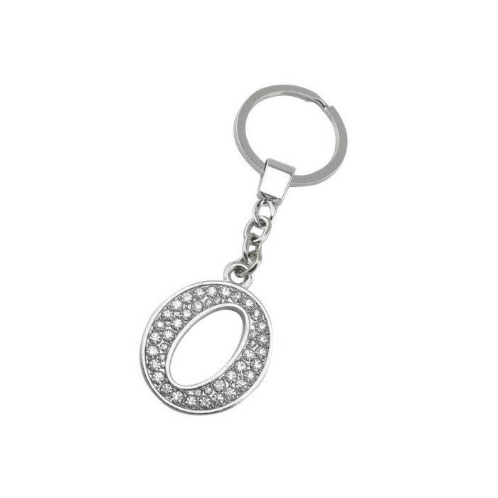 The highlighted keychain comes in a unique “O” shaped design. It has a large silver toned “O” ornament and is paved with gemstones on the letter. This keychain is easy to attach to bags or keys and can keep keys organized.