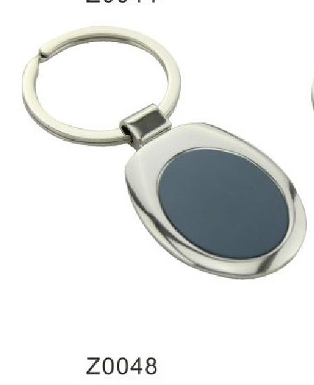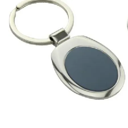 Keep your keys organized and in place with this key chain. Crafted of finely polished metal, this solid, durable and gleaming holder sports a simple design in a smoothly-contoured oval shape and a concave detail in the center. You can keep it plain or personalize it with logo added.