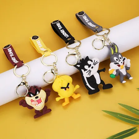 These are keychains . They showcase 3 - D figurines of characters , and Bugs Bunny. Ideal for decorating keys or bags, great for fans.