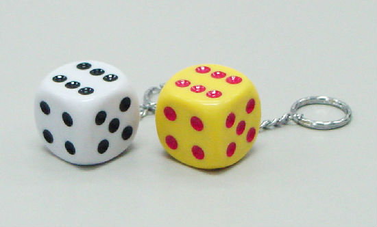Lucky keychain dice, we can use different dices from 7mm to 38mm dice or even client's own designed dice for keychain.