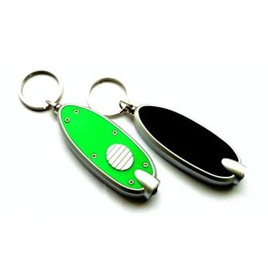 This is an LED keychain light with a unique appearance. It features a robust structure for an extra-long service life. The LED light source lowers energy costs and has a long lifespan.