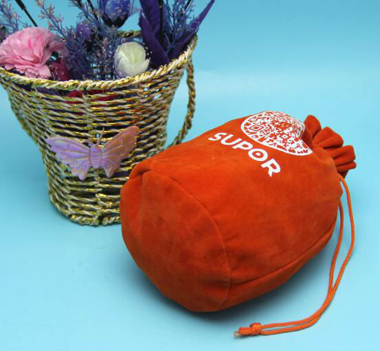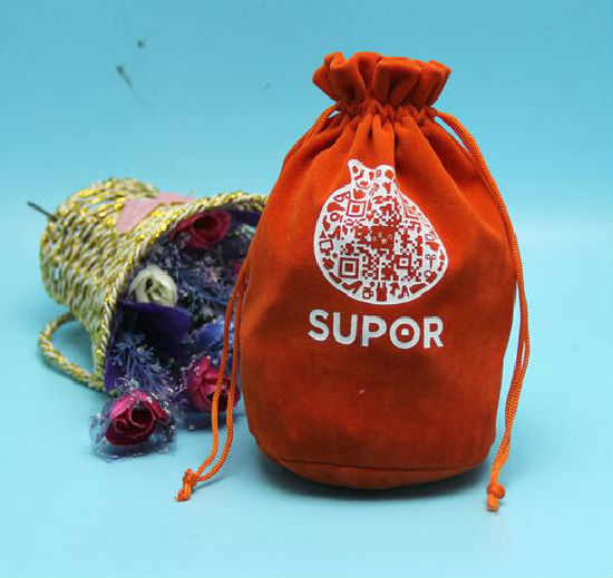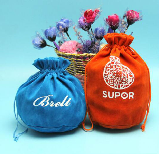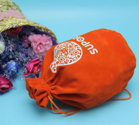1.Material: 1C velvet material+ silk printing logo+drawstring
