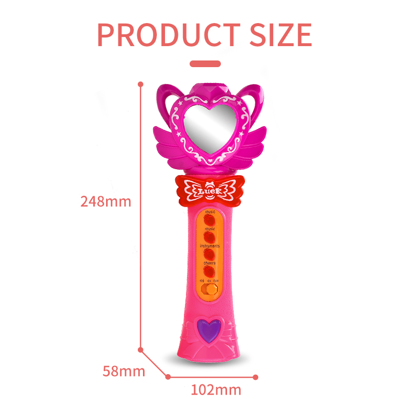 This battery operated microphone comes in the design of a magic stick and is adorned with lovely hearts. It offers easy buttoned operation and has buttons for music, instruments, cheers and on/off on the handle. The toy microphone is great for young children to sing with and can help promote the development of musical skills.