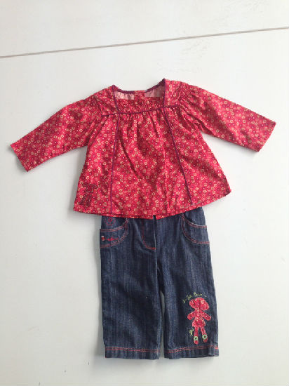 Little red grid clothes, it is Chinese style, with little jeans has a very cute little embroidery,this is made of cotton.