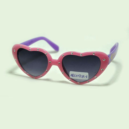 These are kid's sunglasses with heart-shaped rims in pink and a pair of purple arms. The lenses come with UV400 protection to provide close to 100% protection against harmful ultraviolet rays. Let your kids play in the sun with these lovely kid's sunglasses.