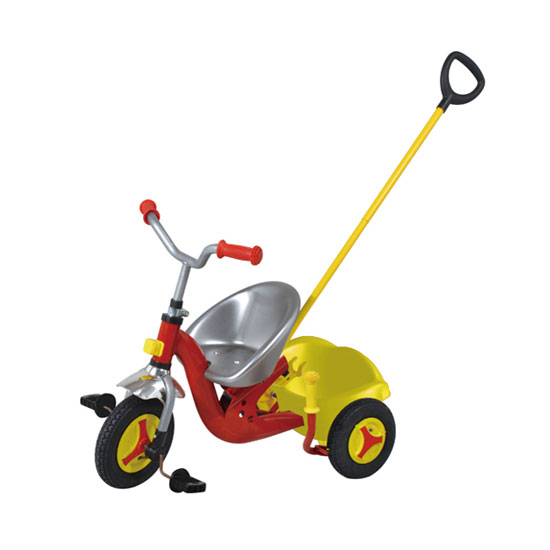 This kid's tricycle comes with a red and yellow finish. The wide wheelbase ensures that the kid will not tip over easily. Get your kid more practice before riding a bicycle when they grow up.