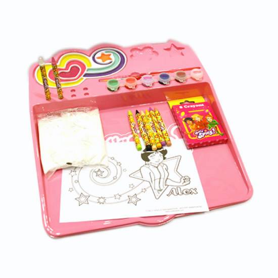 This art desk comes in full package for children who love to draw. The set includes sticker sheets, water colors, 10 coloring sheets, plaster powder and an art desk. This art desk is an ideal gift and art item for children.