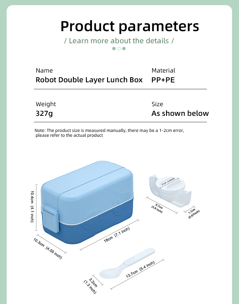 Kids Bento Lunch Box Portable Robot Shape Baby Double Layer Lunch Box BPA Free Microwave and Dishwasher Safe Lunch Containers