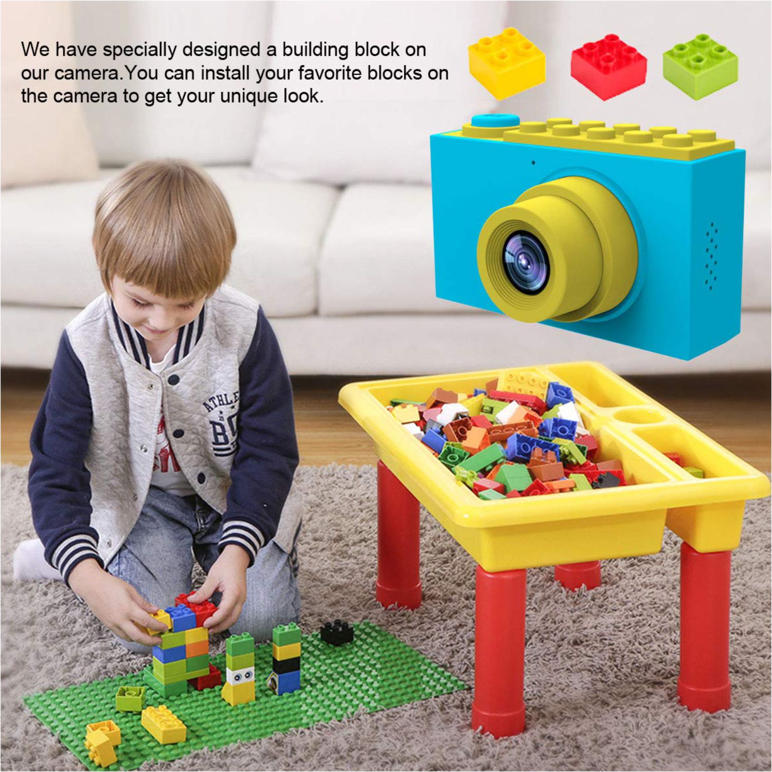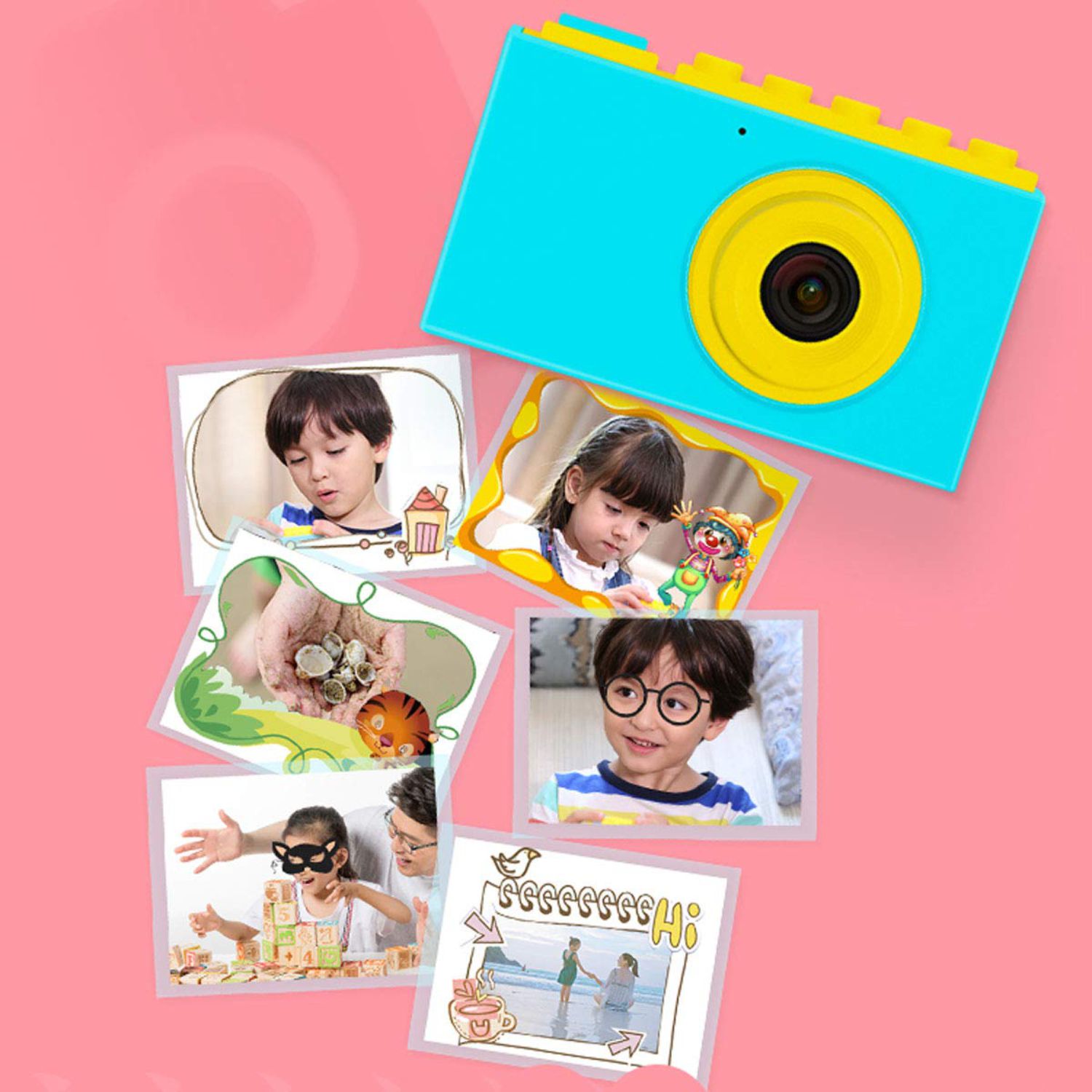 • Fun children's toy camera: simple button design, easy to use, funny key sound, 4x digital zoom, multiple camera modes, can take photos with funny photo frame; more than 30 fun photo effects and 4 filters. Add mysterious Dreamy colors to Children's works with this kids creative camera. The package includes a sticker that can be beautifully decorated for the camera. We have specially designed a building block on the kid Cam, kids can install their favorite blocks on the camera to get unique look