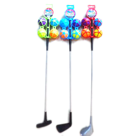 Shown here is a delightful series of golf sets designed for children players. Each set comes with a golf club and four golf balls. Golf clubs of different designs are available too.