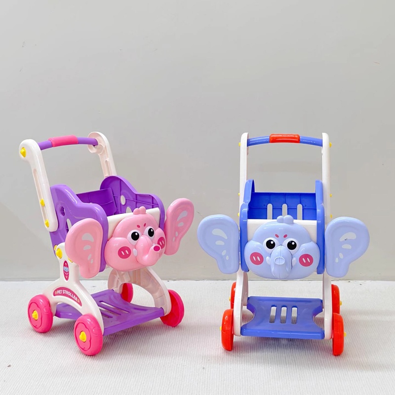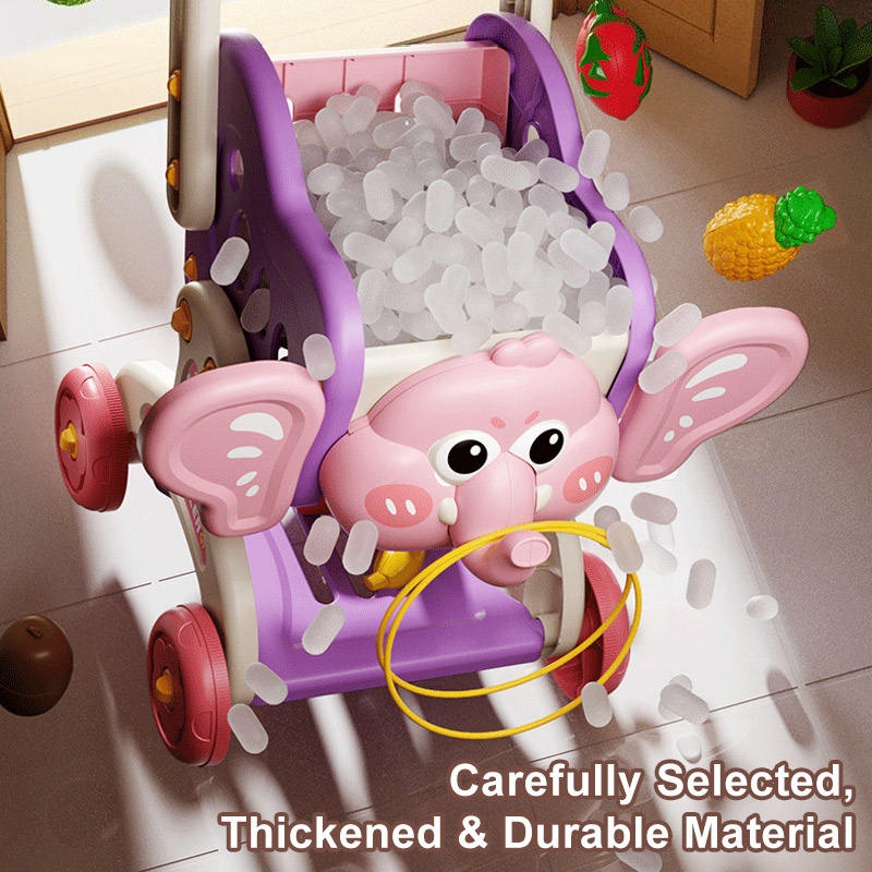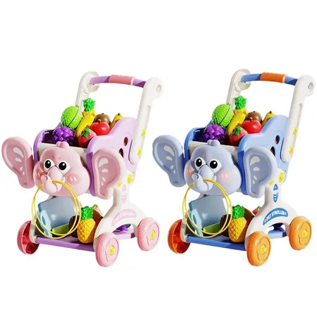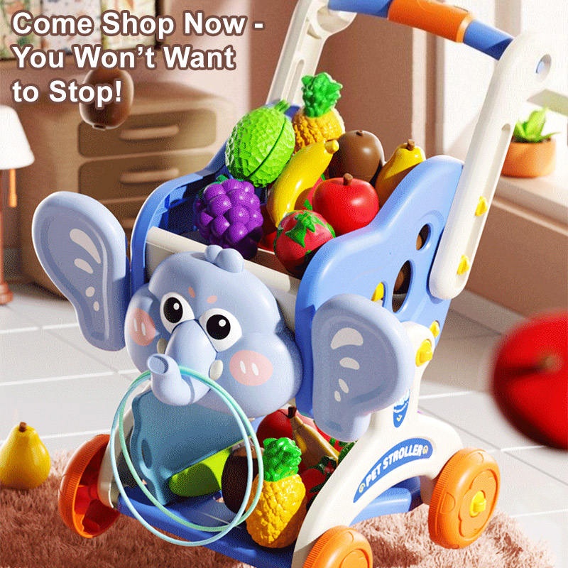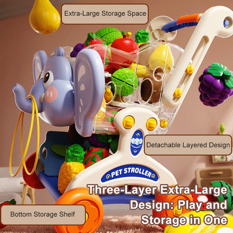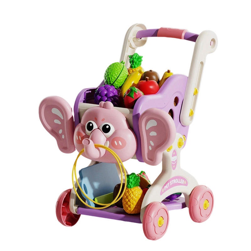 Kids Kitchen Supermarket Elephant Shopping Cart Fruit Cutting Set Pretend Play Toys