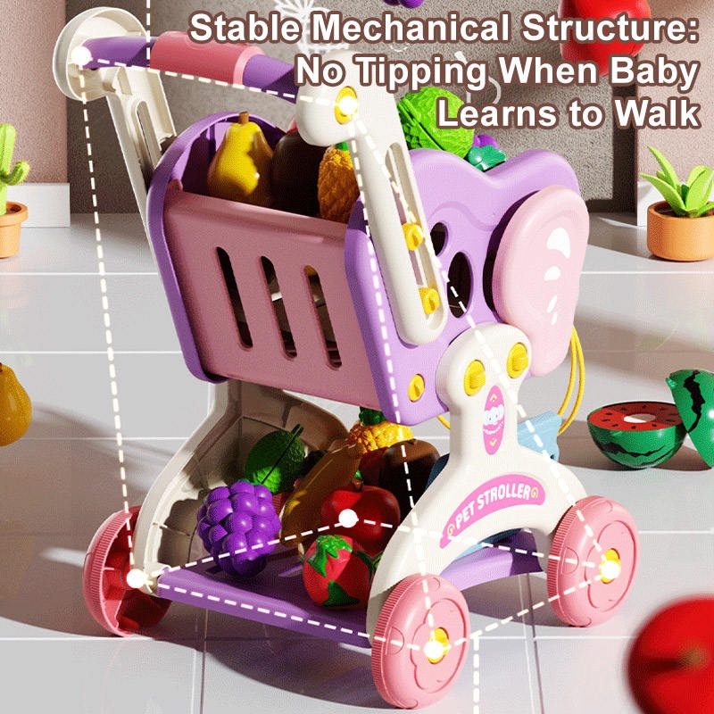 Kids Kitchen Supermarket Shopping Cart Fruit Cutting Set Pretend Play Toys