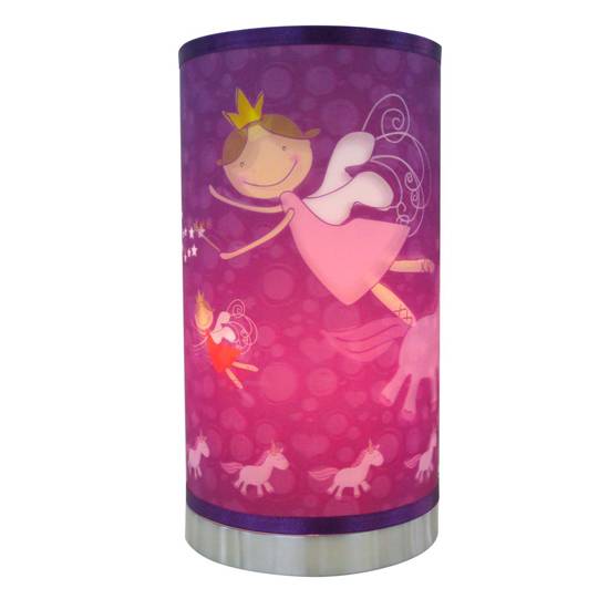 This lamp is interestingly designed for children. On its lamp shade are several angel-like characters with smiling faces, which look welcoming and friendly for children. At the bottom are funny horses orderly presented. The overall purple colour, added with those patterns, best suits for girls.