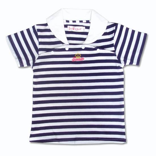 The kids' T-shirt comes in a short-sleeve design. The navy style with blue and white stripes adds a stylish touch. This T-shirt is an ideal piece of causal wear for little girls.