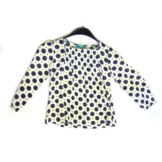 This kids’ scoop-neck pullover features an alluring dotted pattern for an exquisite accent. The pleated bodice lends extra style to the long-sleeved pullover. Spruce up your little one with this stylish top.