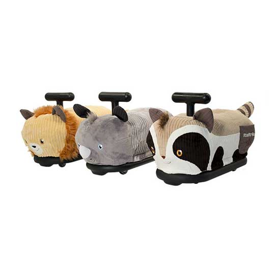 This is a magical ride-on toy for indoor use. It is very easy to assemble. It is just the handle that must be clicked in the body and the toy is ready to go. Once the handle is incorrectly assembled, it won't come out. This toy is very strong as it has been tested for 50 kilos. There are 4 rubber wheels on the bottom which make this toy silent. It does not leave any mark on the floor so mothers do not have to clean after the child. Children can use it even on wooden floor without any problem. The front wheels can turn 360° so toddlers can go wherever they like, even in really small areas, small flats, etc. The shape is round in order to cause as less damage as possible to the furnitures. There is a pocket where the children can hide their secrets or carry their small toys. It is possible to stack them together, one over the other, as the attached photo shows. This is an important bonus for kindergartens because it keeps the room tidy. It is packed in a nice box with a front window that helps you select the design. The suggested age is from 1 to 6 years old. The masters of 4 pieces are not assorted in the design.