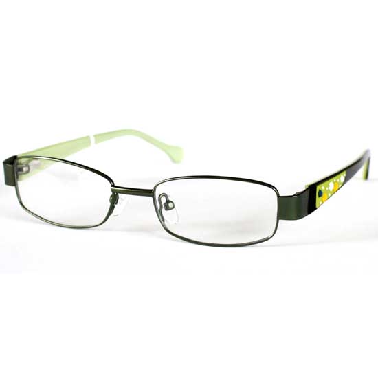 This kids' spectacle frame is designed in a refreshing green color. Multi-color patterns on the temples are cute and interesting. Thin rims give the wearer a touch of sophistication.