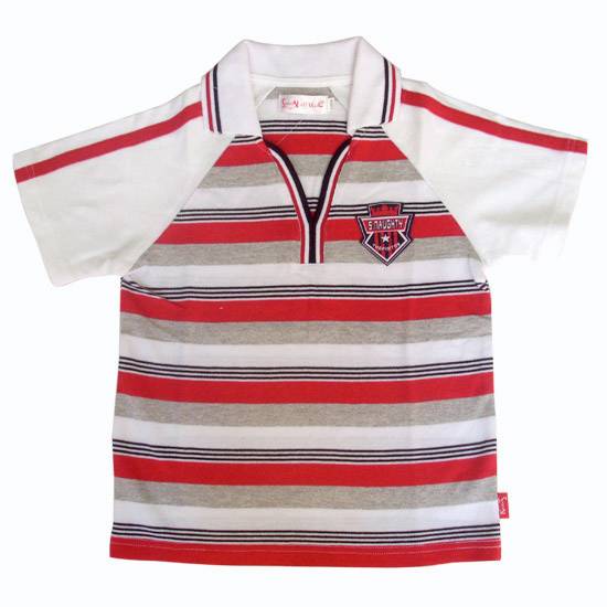 The kids' T-shirt features a short-sleeve design. The stripes add a stylish touch. This T-shirt is ideal for little boys to wear in casual occasions.