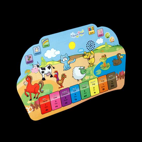 This kids’ touch pad features a colorful print of lovely cartoon animals, catching your little one’s attention effortlessly. When your kid presses the buttons, it will emit sound. This fun touch pad makes an ideal educational toy for your kid to identify animals.