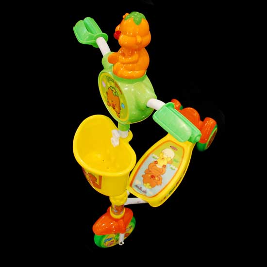Pictured is a kids' tri-scooter coming with PE construction. This tri-scooter will be loved by kids with the allover adorable prints. The lightweight and simple construction also makes it easy for young kids or beginners to handle.