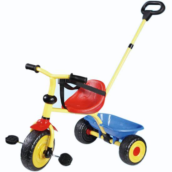 This kids' trike features a solid construction in sharp colors. It is made of durable steel and molded plastic. It includes an adjustable seat so that it can fit your child.
