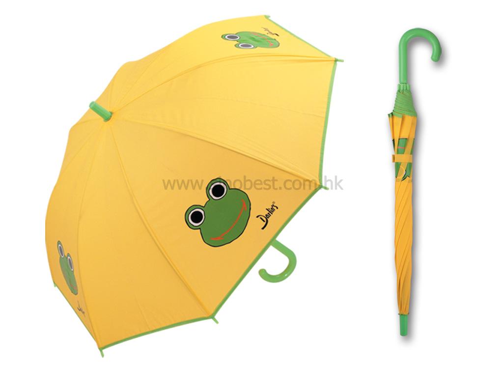 Prepare an attractive yet practical gift for your little one. The presented kid’s straight umbrella is an ideal choice! Protect your beloved one under heavy rains and strong sun rays with the endearing yellow umbrella. The canopy with cartoon frogs imprinted on alternating panels will surely be your little one’s favorite accessory. Finished with a stylish green border along the yellow toned canopy, the compact umbrella is definitely a good choice to add a splash of bright color to your kids’ everyday wear.