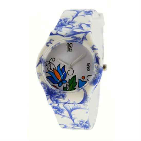 Have your kid go to school in style with this wristwatch. The watch strap and case feature blue and white floral print. The round dial with cheerful print. Stylish and fun, this wristwatch is suitable for school-aged kids and children.