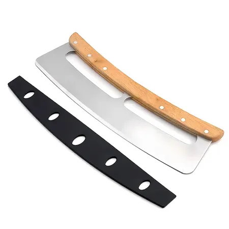 Kitchen Accessories Home and Kitchen Gadgets Wood Handle Crescent Chopper Blade Pizza Cutter Rocker With Protective Cover