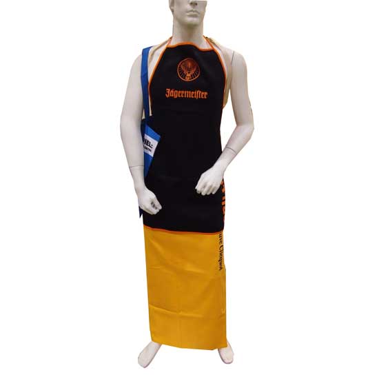 This high-quality kitchen apron offers you adequate protection while you are cooking. The black surface of the garment features red text and a red logo. It is sturdily constructed for a long service time.