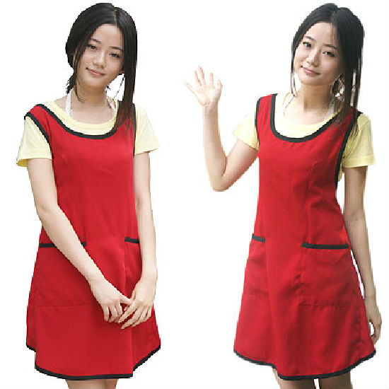 Demonstrated is a classy bib apron in bright colored appearance.