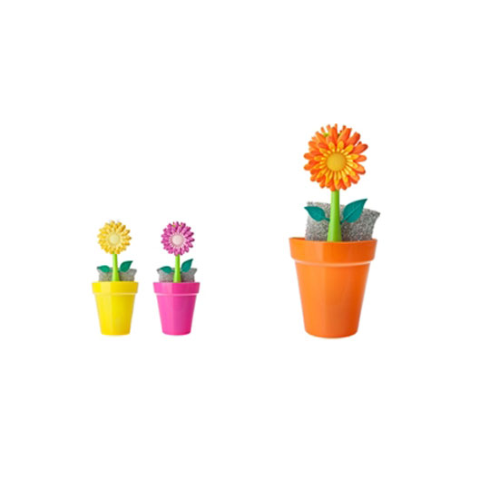 This brush and sponge set with a flower pot design is unique and charming. Both tools are finely made to promise good cleaning efficiency. Brighten up your kitchen with this beautiful set.