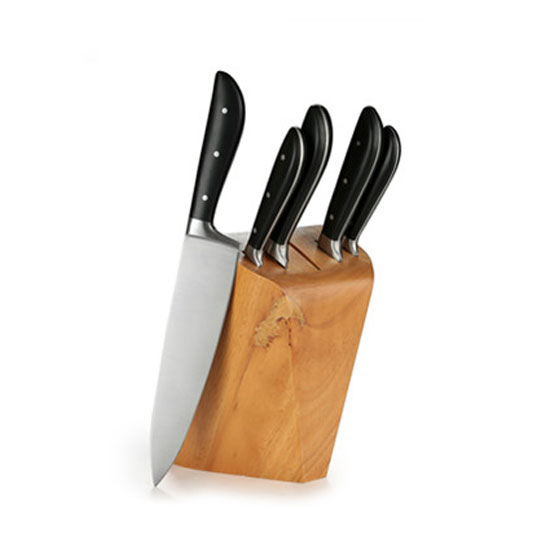 This is a kitchen knife set with 5 knives. The sharp blades allow you to cut meat and vegetables effortlessly. It is perfect for different kinds of kitchen work.