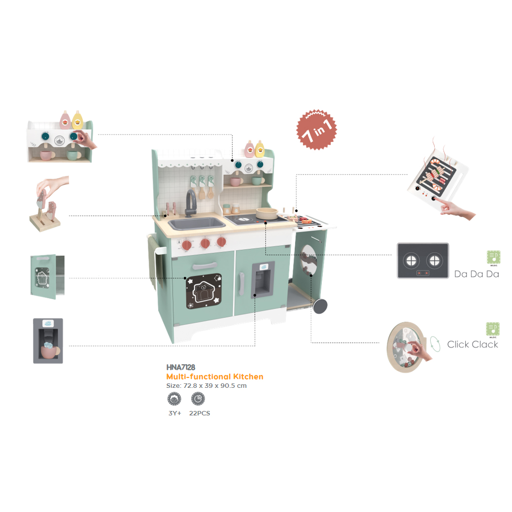 Crafted with child-safe materials, it features realistic appliances, utensils, and interactive elements that mimic a real kitchen environment. The set includes a stove, sink, ice maker, and ample storage, encouraging role play, creativity, and social skills development. Designed for durability, the colorful and detailed design captivate children's imaginations. As an ideal educational toy gift for children, it promotes fine motor skills and introduces basic cooking concepts in a fun and engaging way.