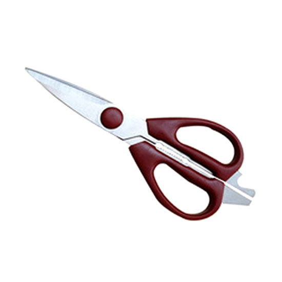 This is a pair of kitchen scissors made of stainless steel for durability. It features ergonomic handles for a comfort grip. This pair of finely designed scissors is an ideal choice for your kitchen.