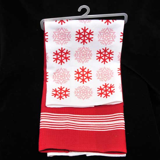 The kitchen towel set comes in a 2-piece design. It is imprinted with snowflake patterns for added style. This towel is soft and easy to wash.