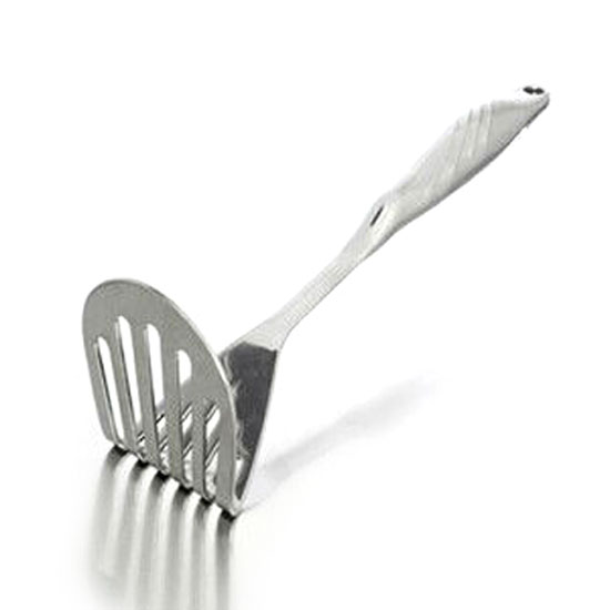 This is a kitchen turner coming with a silvery finish. It lifts up hot food items effortlessly. It is made from premium quality metal for a durable construction.